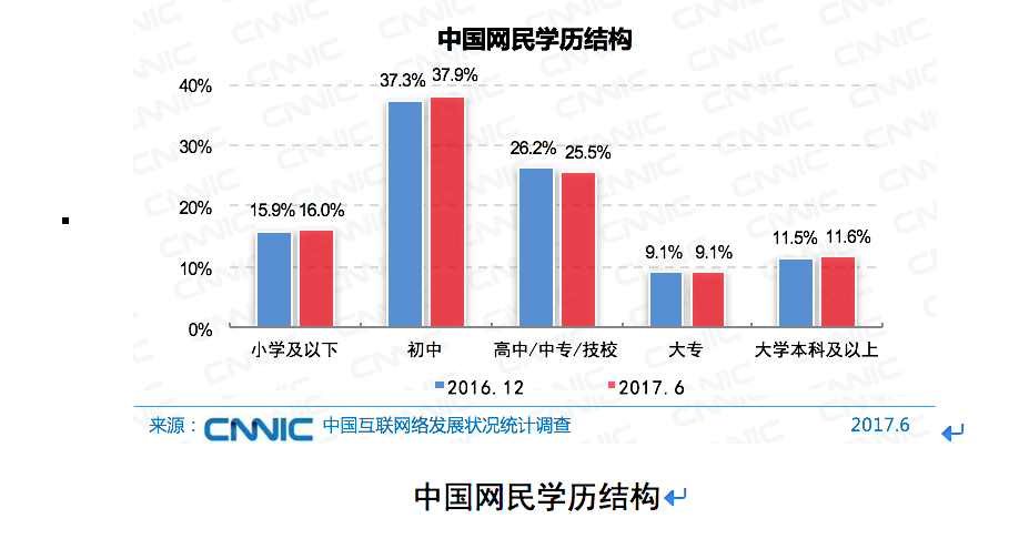✅ 因此,截至2017年6月,**大学本科及以上学历的网民占比为 11.6%**。